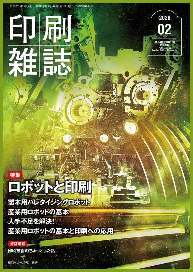 2026年1月20日発行 特集 ロボットと印刷 製本用パレタイジングロボット〔中村菊男〕 産業用ロボットの基本〔内藤佑太〕 人手不足を解決! 初めてでも簡単に使える協働ロボットによる自動化〔安部健一郎〕 産業用ロボットの … 続きを読む 2026年2月号